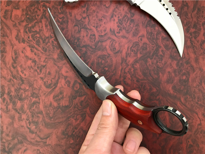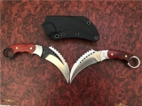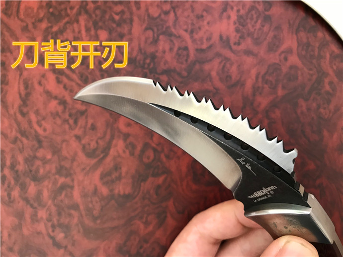 吉尔Hibben自1970年开始就一直是全职的刀具锻造师他们已经成为世界上最受刀迷尊敬的knifemakers之一,本产品采用DC53钢打造,防锈性能好,韧性好的特点。以达到优异的锋利度和切削效果,硬度可达到60-61HRC,表面有两个版本砂光和砂光+沧桑石洗处理;双刃一体,刀刃带血槽,杀气冲天,刀柄采用进口科檀木,颜色鲜艳高端大方,手感更加舒适!配送礼品盒,具有很高的使用和收藏价值!