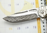 参数:总长:21cm,刃长:9.0cm,刃宽;2.8cm,刃厚3.5MM,钢材:日本夹层大马士革钢(钢芯层VG10)78层,真空深冷热处理,开刀方式:单手快开,轴承:进口滚珠轴承
