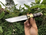 分外璀璨夺目。刀鞘上端,有个小孔,插着一把铮亮别致的紫铜环子,拔刀出鞘,刀锋闪闪发亮,寒光逼人。这种腰刀还可以用作宰牲和餐具,削吃羊肉,更是方便、卫生。