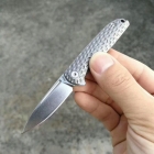 奥地利粉末神钢M390,硬度达到61HRC,净重仅38克!!全TC4钛合金手柄,表面刻蜂窝纹,防滑手感出色,搭配陶瓷滚珠轴承快开系统,极具玩点!EDC小折,你的随身防身装备[机智][机智]规格:全长130MM,刃长55MM,刃宽15MM,刃厚3.0MM,真空深冷热处理工艺,性能强悍