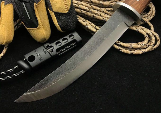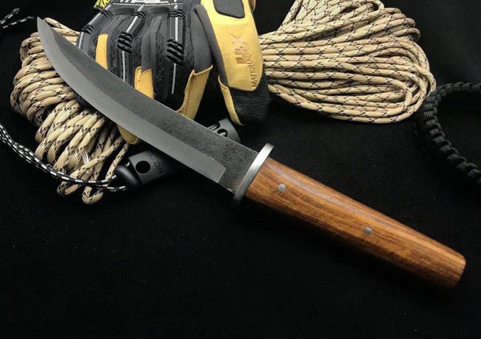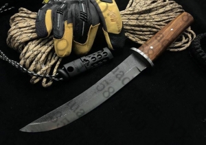 全 长: 30cm 刃 长: 18cm 刃 厚: 5mm刃 材: 不锈钢 硬 度: 58HRC 重 量: 0.59kg 表 面: 砂光柄 材: 非洲黄花梨 刀 鞘: 皮套