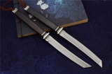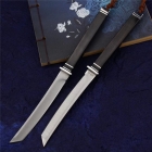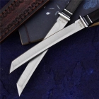 一款简约风格小武士刀、ATS-34钢材制作表面石洗效果非常不错,硬度60HRC真空热处理,(高端雕花复古牛皮刀套)
