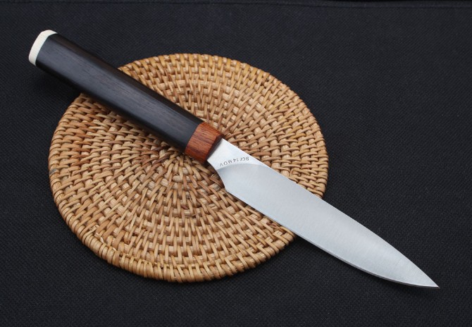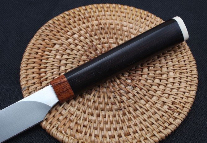 手柄采用日式三角柄设计,搭配黑色紫檀木+花梨木+仿真牙隔片,配礼盒!