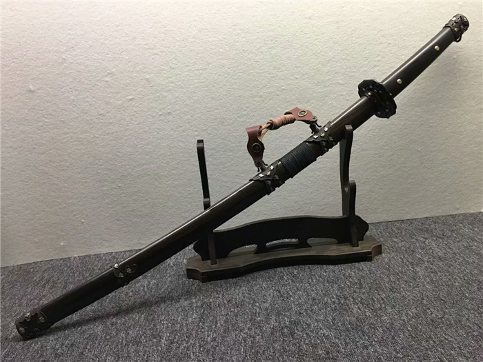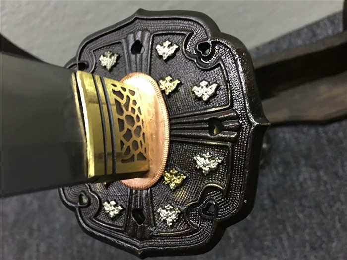 全铜鎏金鎏银黑檀手工研磨花纹纲太刀