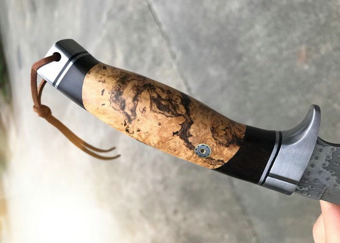 参数:总长:26cm,刃长:12cm,刃厚:3.6mm,刃宽:3.3cm,钢材:日本夹层VG10大马士革钢,76层锻造!真空热处理,硬度:60-61HRC,柄材:美国红影木瘤稳定化,每一把花纹独一无二,皮套;真皮做旧效果!包装:木盒包装!