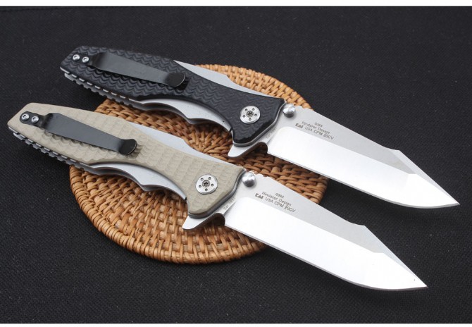 相当前卫概念化的设计,简化了之后逊色了不少。刀柄材料是G10,刀刃材是9Cr18MoV钢,硬度约58HRC。钢内衬片,滚珠轴承的主轴。打开全长:24.5cm闭合:14.3cm刃长:10.4cm刃厚:4mm净重:209克