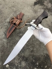 【皮套/进口阿根廷牛皮套,手工缝制镶嵌鳄鱼皮、外部设计鞋帽挂带皮配件,方便随身携带】 总长:35.5cm、刃长:24cm、手柄长:12cm、刃厚度:5.5mm、刃钢材:俄罗斯高速钢,刃宽:3.5cm、硬度:61HRC, 手柄做工/材质:不锈钢S型护手钢头+黄铜隔片+黑檀木 全程手工开刃,锋利无比,收藏极品之一、喜欢的朋友不可错过,