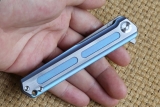 品名:时代 T01 折叠刀刃材:粉末钢M390(表面石洗处理)硬度:60-61HRC(真空油淬热处理)柄材:TC4钛合金,表面颜色是阳极氧化处理。(2种类型,4种颜色可选)轴承:陶瓷珠KVT系统。打开全长: 19.7cm闭合长度:11cm刀片长:6.8 cm刀片宽:2cm刃厚:3.2mm净重:90g