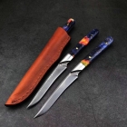 花纹天然而成,大马士革手柄钢头+稳定固化木柳钉固定,颜色十分艳丽色彩,纯手工小刀、