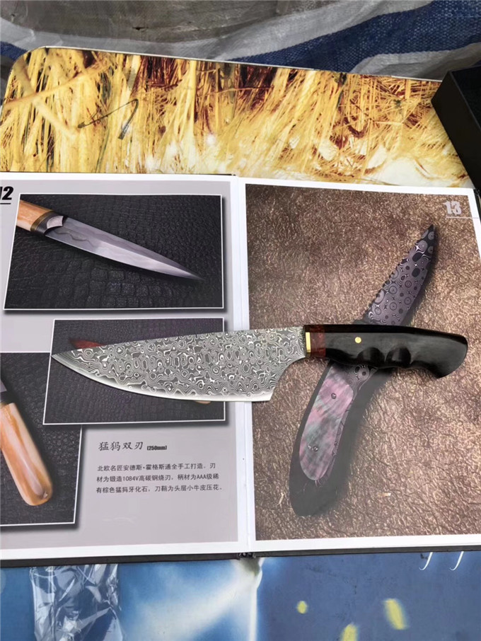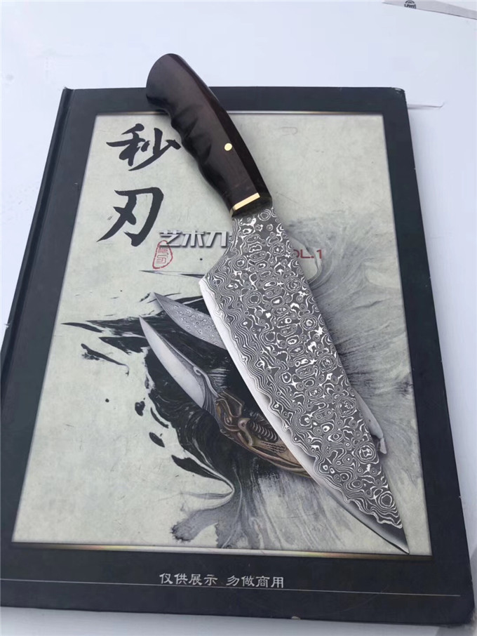 VG10大马士革钢、只要卖点:极度锋利!真空热处理浸油、硬度60度、厚度0.3cm。全长30刃长18cm宽5.5cm花梨瘿木黑酸枝木组合手柄。