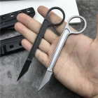 其精致小巧的造型使其可以隐藏在身上任何地方携带。其形似外科手术刃的刃片搭配超薄手柄,使其有着更灵活的攻击/防卫效用,超大号尾指环设计可以更好的控制这把刃,保证使用时不会轻易脱手,而且尾环设计作用不仅于此,还可以让使用者更快速的改变刃口朝向,从意想不到的角度进行攻击。