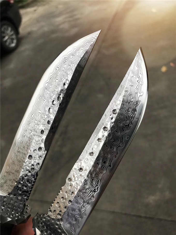 总长:25cm,刃长:13cm,刃厚:4mm,刃宽;2.3cm,钢材:日本进口VG10钢锻造大马士革钢73层(真空深冷热处理)硬度:60-62HRC,开刃方式:多次水冷细磨开刃,锋利度极其好!柄材:进口微粒黄檀木与黑檀木(凹凸立体石化纹),钢头档手采用大马士革钢,配送大马士革吊坠!皮套:意大利
