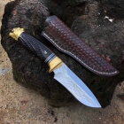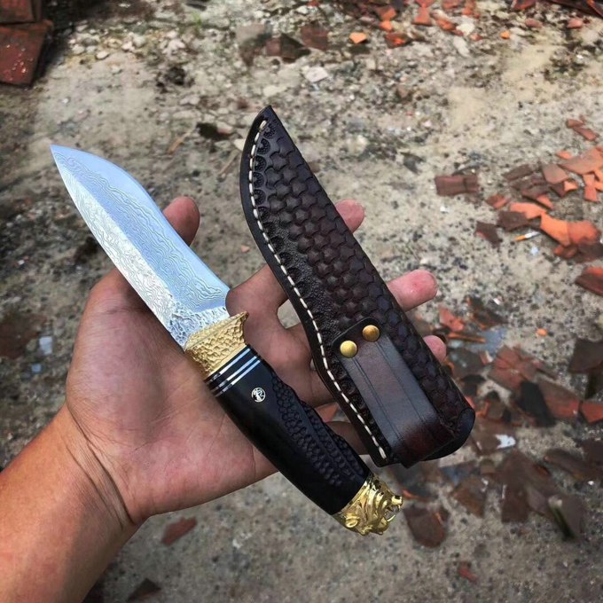 硬度:60HRC、手柄材料:黄铜雕刻+黑檀木+黄铜猎豹雕刻头、佩手工雕花牛皮套
