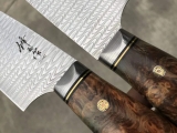 此刀为美国刀匠特别定制版手工制作大马士革厨师刀,钢材由日本进口VG10锻造大马士革钢,手柄采用树瘤稳定木,搭配意大利进口手工雕花镶嵌皮套!原装正品配实木盒子包装,高端大气!送礼必备与专业厨师级专用!每一把刀都是师傅手工匠心打造,每一把刀都是独一无二!是每一把收藏者必备作品!