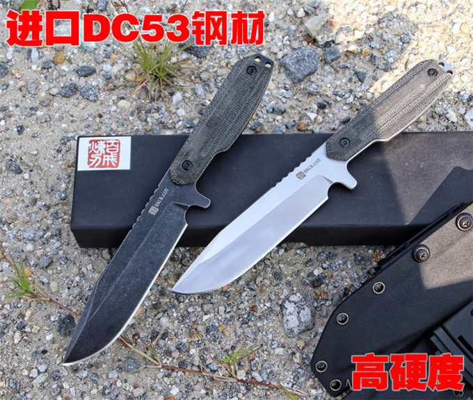 亚麻手柄,真材实料进口DC53钢,硬度达到62-63HRC,总长:28cm,刃长:15.5cm,刃厚:5mm,刃宽:3.6cm,钢材:进口DC53钢,硬度61-63HRC,真空深冷热处理,柄材:亚麻材质、吸汗、速干、防滑 刀套:进口战术K鞘! 视频测试:https://v.qq.com/x/page/u0712k9jpx9.html
