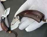 纯手工版小仓鼠,钢料/大马士革钢VG10、硬度60HRC,钢口经二次开锋、表面原纹大马士革钢祥云花纹自然一新、(手柄钢钉用料大马士革钢材料固定)