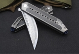 托德-贝格钛合金碳纤轴承快开折刀 (大马士革钢)