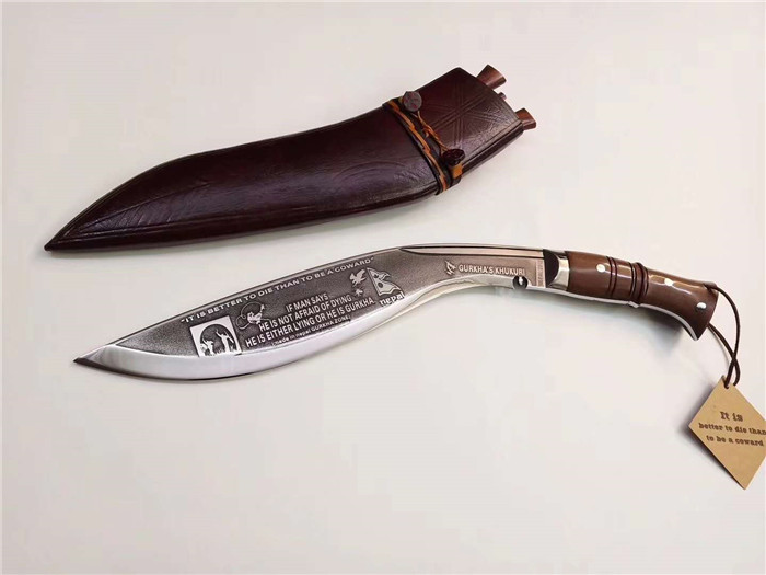 丛林二型廓尔喀弯刀在尼泊尔传统系列里面算是一款较为独特且经典的重型丛林刀,以其整刀极为厚重而著称,刀背最厚处达10毫米,全长45厘米左右,在户外丛林砍伐时因其自身重量大,挥舞时的惯性推进力度强劲,所以能起到最佳劈砍效果,一款名副其实的能当斧头使用的刀具,当然了,整刀800-900区间的重量也需要较好的臂力才能把控自如。