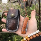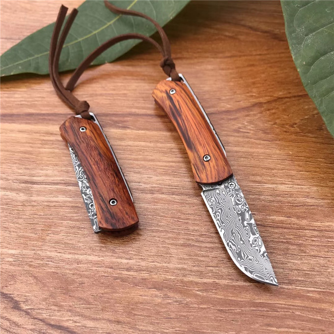 规格:全长13.6cm ,刃长5.8cm,柄长7.8cm,刃厚2.5mm,刃宽2.0cm,刃材:进口Vg10大马士革钢,硬度58-60HRC,重量:约115克(含包装),表面:锻打大马士革祥云花纹原色,柄材:非洲黄檀木+不锈钢雕花底骨+铜轴贴片,配送:高级礼品盒+雄狮皮套+牛皮绳!