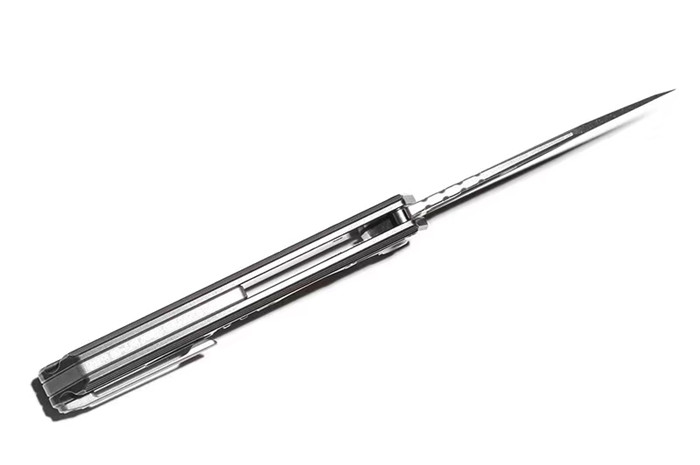 刃材是粉末钢M390,表面处理精细喷砂石洗,真空热处理硬度约60~61HRC。