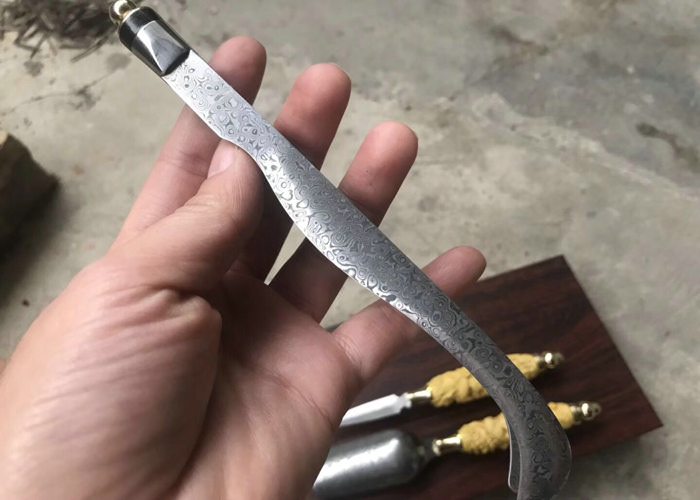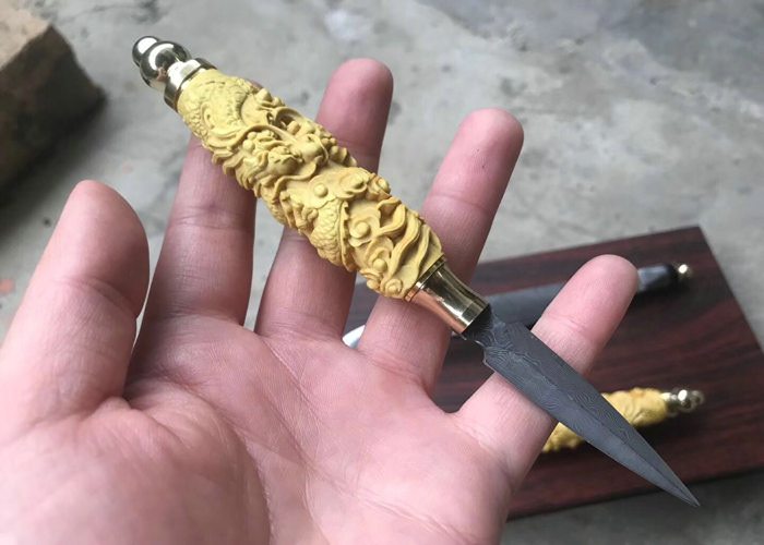 高端系列:大马茶针-大马茶勺-大马茶夹。大马士革钢料制作、老师傅·纯手工打造,黄杨木精雕手柄,高档品茶用具之一,喜欢泡茶的老铁们,不要错过哦————茶针约总长:16cm、刃长6.5cm、刃厚2.5mm、茶勺约总长:17cm、勺钢长8cm、厚度:2mm茶夹约总长:18cm、厚度:2mm————钢材:大马士革钢硬度:59HRC表面:大马士革原纹柄材:精选黄杨木精雕神龙包装配置:高级礼品硬盒