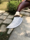 纯手工开刃,手柄搭配仿牙料+进口红酸枝木,手把握感非常舒适,【纯手工制作小魔牛扣钉牛皮刀套】参数,总长:13.5cm、刃长4cm、手柄:9.5cm、刃厚度:2.3mm、钢材:进口无钢芯层锻造大马士革钢,手柄材质:仿牙料+血檀木,皮套包装:手工制作真牛皮刀套+黑色礼盒包装!