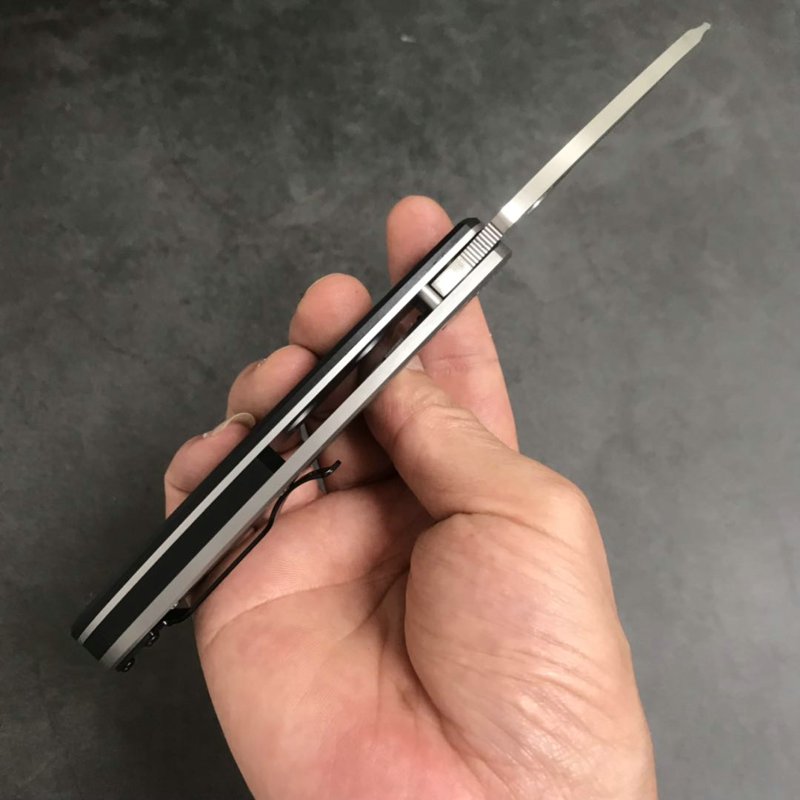 GBD2钢,硬度达到61.5 钛合金加G10刀柄,钛合金加持高逼格 喜欢的不要错过总长度:225毫米 刀片长度:94毫米 钢:GB-D2 闭合长度:131毫米 边长:76mm 刀片厚度:4.0mm 柄材:钛合金加G10
