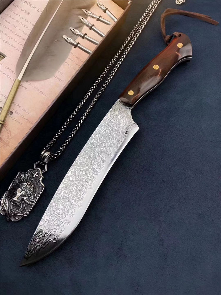 刃材:进口锻造大马士革钢VG10、专业真空热处理