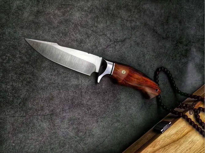 总长:25.0cm,刃长:12.5cm,刃厚:3.5mm,刃宽:3.5cm,净重:190克,钢材:奥地利M390粉末钢,热处理:专业真空深冷热处理,性能强悍,硬度:61HRC,柄材:美国沙漠铁木,表面处理:石洗和拉丝,皮套:意大利优质进口植鞣皮,刻印外压纹,手工缝线!复古怀旧棕色!包装:复古手工盒子!