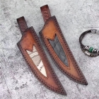 总长:24cm,刃长:13cm,刃厚:4mm,刃宽:3.4cm,钢材:进口锻造大马士革钢96层,硬度:60-62HRC,真空热处理,韧性锋利度非常好,柄材:黄铜头+进口固化稳定木材,皮套:意大利进口高端手工雕花缝线植鞣皮手工着色怀旧效果!包装:手工盒子包装!