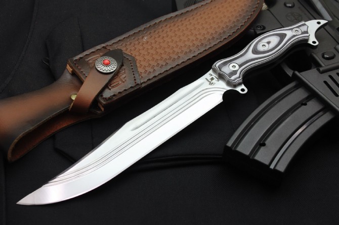 其 他:水滴头三血槽刀身,刃口锋利一体龙骨结构真皮压花刀套。品 质:优等,合适野外生存刀具,设计完美,刀柄后有撞击头可以撞碎厚厚的玻璃和瓷片。