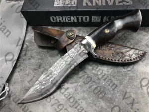 总长:27cm,刃长:13.5cm,刃厚:3.5mm,刃宽:3.7cm,钢材:vg10大马士革,硬度:60-62HRC,真空热处理,韧性锋利度非常好,柄材:牛骨+黑檀木,皮套:意大利进口高端手工雕花缝线植鞣皮手工着色怀旧效果!包装:手工盒子包装!