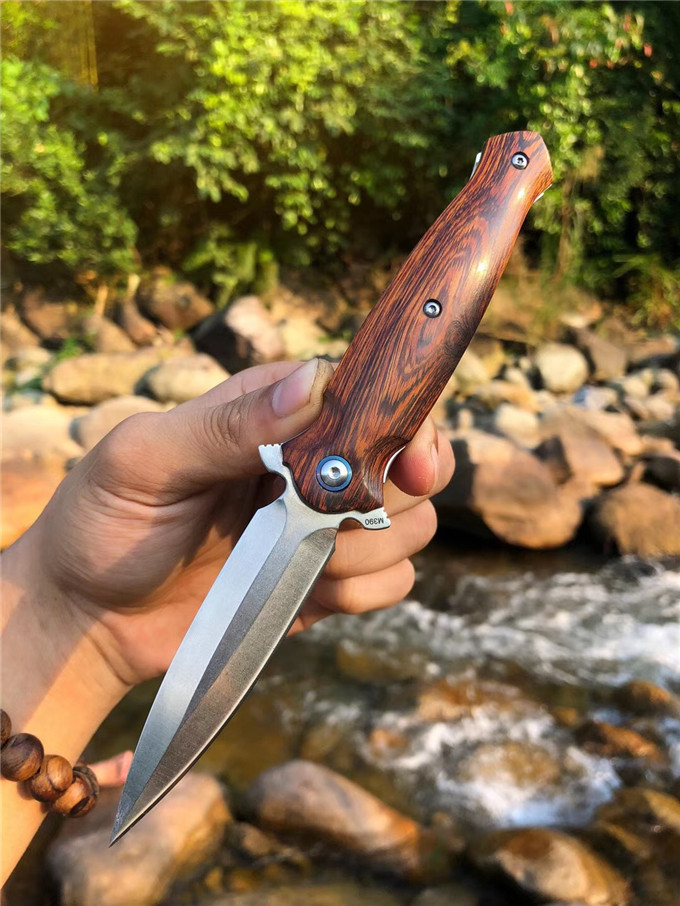 总长:18.5cm、刃长:9cm、闭合长:10.5cm、钢材厚度:3.1mm、刃宽度:2.1cm、刃钢材:奥地利进口M390粉末钢,硬度:62HRC,刀刃钢材:奥地利进口M390粉末钢(真空深冷热处理),表面效果/石洗,硬度:62HRC。手柄做工/材料:进口美国沙铁木材制作(每把纹理独一无二),开刃方式:水冷二次开刃。皮套选材制作:意大利进口手工雕花手工缝线植鞣皮镶嵌(蛇皮)经典复古效果!