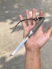 总长:21.5CM,刃长:9.5CM ,刃厚:2.5MM,刃宽:1.4CM ,钢材:奥地利M390粉末钢与瑞典山特维克14C28N粉末钢两种,硬度分别是60-62HRC与60-61HRC,热处理:真空深冷热处理,柄材TC4钛合金与TC4钛+G10材质,配骷髅头吊坠,皮套:纯手工意大利进口手工雕花皮套手工缝线植鞣皮,包装:手工盒子包装