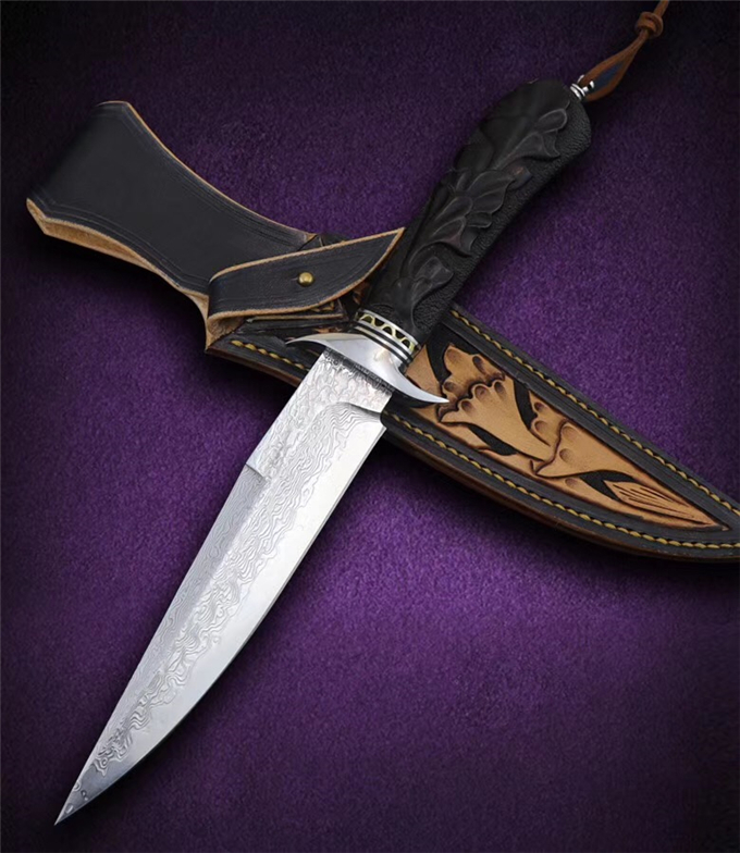 总长:29cm、刃长:15.3cm、柄长:13.5cm、刃厚度:3.5MM、钢材:日本VG10高硬度锻造大马士革钢,专业真空热处理硬度达到60HRC,手柄材质:钢头+黄铜隔片+黑檀木手工雕刻荷花图纹,包装皮套:高级手工盒+意大利手工进口植鞣雕花复古刀套!