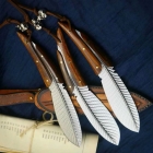 2月新品上市【骨刃•羽毛】精级系列作品,各位老板们不要错过、纯手工原力制作 ,85把限量发售!558包邮/正常发货!进口锻造一体龙骨大马士革钢无芯层(107层折叠锻造)花纹触手可及真材实料。采用6MM原厚钢板制造,精工雕刻后厚度为3MM,刀身硬度:60HRC,真空回火热处理,手工二次开锋,剃毛削纸绝对飞快,锋利度无疑担心,刃面工艺:羽毛图案3D精雕而成显露羽毛麟体高贵大气、柄部搭配进口美国砂铁木材,一木一柄手工镶嵌/老师傅打磨以及抛光完成,细节造工非常极美,佩戴皮套(意大利进口植鞣皮纯手工精雕羽毛图纹,手工缝线擦色制作),此款好东西本人强力推荐!无论收藏或送礼!都是不错的选择。全长:19.8cm、刃长:10.8cm、手柄:9cm、钢材厚度:龙骨6MM雕刻后低钢为3MM、刃宽:3.4cm、钢材:进口锻造大马士革无芯层钢107层折叠,硬度:60HRC,包装:手工黑色盒+复古羽毛皮套。
