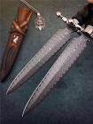 手柄工艺:选用304不锈钢头,后期纯手工研磨抛光镜面效果,极致雕工护手位置,欧式宫廷柱造型,搭配进口黑檀木,【皮套:意大利进口植鞣皮纯手工雕花镶嵌蛇皮+魔鬼珍珠鱼皮刀套】总长:32cm、刃长:18cm、手柄:14cm、厚度:4mm、刃宽:3.1cm、钢材:进口锻造大马士革钢(乌波纹)、真实硬度:60-61HRC,热处理:真空深冷高温热处理,手柄材质:304不锈钢头+进口黑檀木、包装:高端手工木盒+皮套。