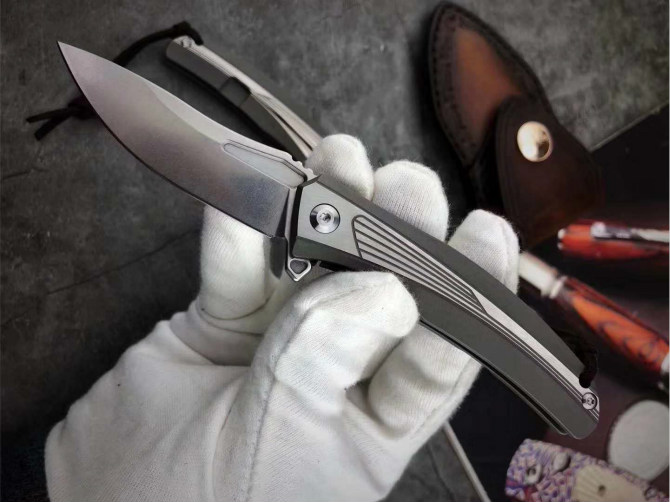 品质用料做工非常好、锋利度与韧性保持度非常好,防锈性出色。高端配置采用TC4钛合金手柄表面磨光工艺制作,搭配奥地利进口M390粉末钢,硬度韧性超级出色,专业真空热处理真空油淬,硬度在60-62HRC(视频中,硬度测试器可见)钢材正品保证!韧性与硬度上都是比较优越的,在刀友圈子中被公认的一种高端刀具钢材。一款给你发错实用方便携带的快开轴承折刀!搭配高端手工植鞣皮!总长:15.5CM,刃长:6.8CM ,刃厚:3.0MM,刃宽:2.0CM ,钢材:奥地利M390粉末钢,真实硬度是60-62HRC,热处理:真空油淬热处理,柄材TC4钛合金(表面喷砂磨光效果),配骷髅头吊坠,皮套:纯手工意大利进口手工雕花皮套手工缝线植鞣皮,包装:手工盒子包装搭配进口意大利手工雕花缝线的植鞣皮套,质感效果非常好日常携带非常方便!此款刀推荐给你刀友们是非常不错的选择!值得推荐!