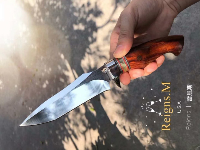 刀匠设计,手工版直刀!每一把刀都有它的灵魂所在,此款刀无论是日常户外使用还是刀友们的收藏把玩都是非常值得首选的,在配置上绝对良心搭配制作,采用都算是高端材质,美国沙漠铁木,搭配进口DC53模具钢,纯手工复古皮套,这些都让你足够优秀!