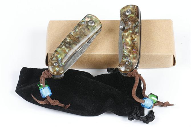 ◇全 长:11.7cm◇刃 长:4.5cm◇柄 长:7.2cm◇刃 厚:2.3mm◇刃 材:大马士革钢◇硬 度:58HRC◇刀 柄:鲍贝+钢片◇表 面:大马士革花纹◇锁定方式:线锁◇重 量:80.0克(含绒袋)◇包 装:礼品盒+绒袋