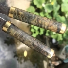 极致细腻做工,精品给人耳目一新!刀刃选用正品大马士革钢,锻打流水纹朵朵饱满、稳定木手柄精镶黄铜隔片,顶部和尾端各镶嵌红色玛瑙