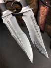 新品美图,【泽尔-博弈】大师新作品,首批数量65把、纯手工打造出品,选取进口锻造大马士革VG10钢制作,高硬度钢材真空热处理,手工开刃锋利度极好,剃汗毛削木头极度锋利无比,表面原大马士革祥云花纹出色,双U不锈钢钢头精工镶嵌制作,搭配进口稳定木材制作/挑选合制而上,每把木材成色非常漂亮。无感舒适,皮套/进口阿根廷植鞣皮手工制作雕花高端刀套