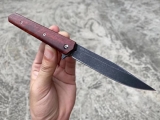 【蜂刺】高速HSS锋钢/快开轴承折刀,简师傅作,采用USA美国进口锯片HSS锋钢W18型号刀片,锋利度韧性硬度综合性保持度很好!尝试期间不敢多做,成本很高,制作工艺非常难,简师傅用尽办法继续研究,历经2个多月,终于出品,成品只有38把,自己留一把玩!懂货的朋友就知道这种钢材性能,我不做多介绍!总长:20.5cm,刃长:9cm,刃厚;2.5mm,刃宽:2.6cm,重量:90g,钢材:美国进口锯片钢HSS-W-18高速锋钢,硬度62-65HRC,专业真空热处理,柄材:紫檀木,表面效果:灰黑石洗效果!