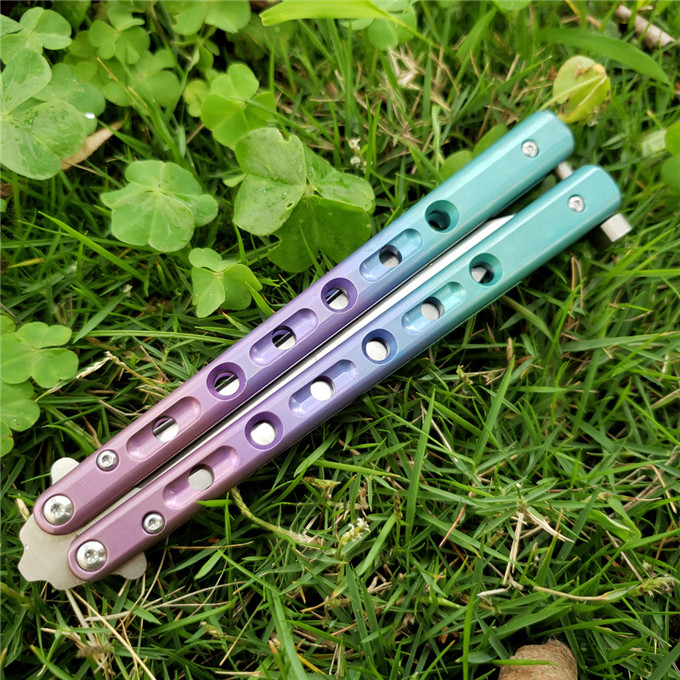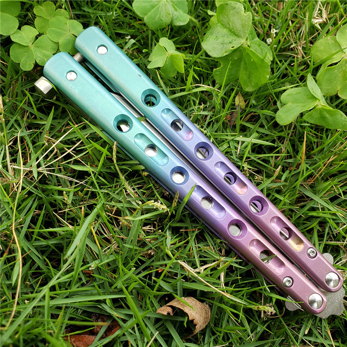 由The one (唯一)精工打造,刀柄选用一体T-4钛经数控车床(CNC)加工而成,刀刃选用优质D2刀刃,数控精磨,搭配bushing轴套系统,转动顺畅! 精工细活,为广大甩刀迷打造经典蝴蝶甩刀