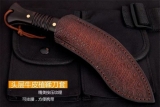 大马士革钢-尼泊尔钻石狗腿 、全 长23cm 刃 厚5mm 进口VG10大马士革钢 硬度:59-60HRC 黄金檀木 钢头手工雕花牛皮刀套 礼品盒