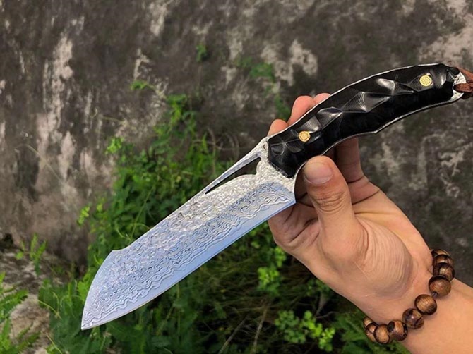 大师刀匠纯手工作品,刀光剑影、独特的设计造型风格,进口锻造一体钢打造,祥云花纹高端大气,耐砍/耐劈强悍型,锋利度极其出色!手柄雕刻不规则的凹凸线条纹理结构,显出个性手工打造风味,一把个性十足的作品,应该是每一位热爱玩刀的朋友必收藏一款!强烈推荐,无论在个性外形设计上,还是在强悍实用型都给你一种出色的表现!