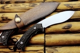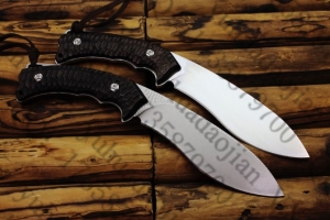 总长:26.5cm,刃长:14.3cm,刃厚:4.5mm,刃宽:4cm,钢材:进口DC53模具合金钢,硬度:60-62HRC,热处理:真空深冷热处理,柄材:进口黑檀木(纯手工制作雕刻),皮套:意大利进口植鞣皮(纯手工缝线雕花)!配牛皮绳子装