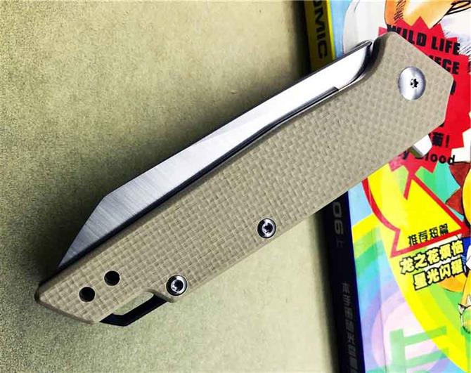 手柄全G10,减轻重量。CNC加工搭配沙漠色防滑G10手柄表面,有背夹。