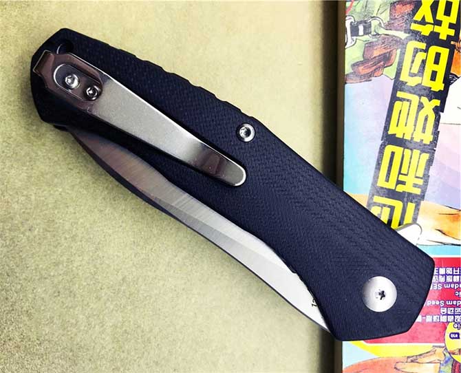 手柄全G10,减轻重量。CNC加工搭配黑色G10手柄圆弧表面,有背夹。