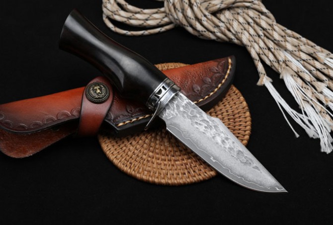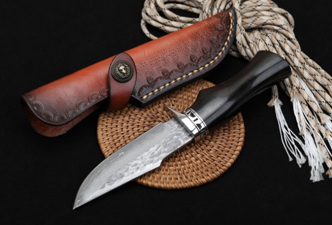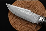 】高端大马士革手工刀,厂家特惠价老客户咨询优惠!原装正品出口北美地区,强悍霸气的外形设计,繁忙外露,无论在手感上或者做工细节上都带给你出色的表现!外形上可以说是非常一款酷的博弈猎刀!搭配意大利进口纯手工的雕花缝线植鞣皮,绝对是高大上感觉!好刀配好鞘!总长:22.3cm,刃长:11.8cm,刃厚:3.3mm,刃宽:3.4cm,钢材:重量 243g 含皮套 日本进口VG10锻造大马士革钢,,硬度59-61HRC,热处理:真空热处理,工艺制作:纯手工+机器加工,柄材:钢头+黑檀木+ 一体龙骨结构入柄!皮套:意大利进口优质头层植鞣皮,纯手工雕花,手工缝线制作!非常高端定制